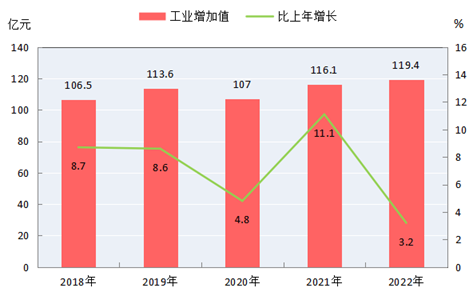圖4 2018-2022年全部工業(yè)增加值及其增長速度