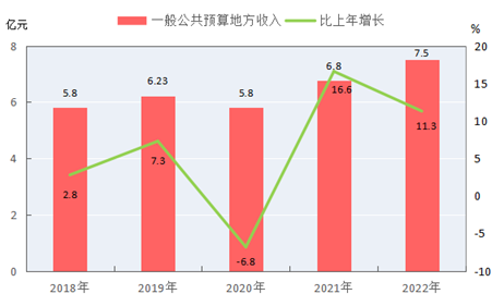 圖10 2018-2022年一般公共預(yù)算地方收入及其增長速度