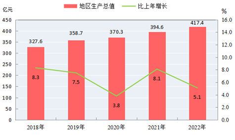 圖1 2018-2022年地區(qū)生產(chǎn)總值及其增長速度[3]