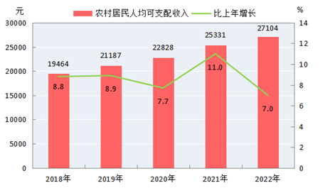 圖12 2018-2022年農(nóng)村居民人均可支配收入及其增長速度
