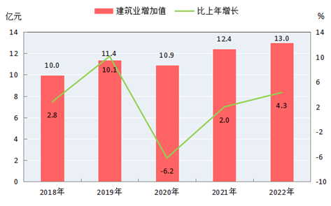 圖5 2018-2022年建筑業(yè)增加值及其增長速度