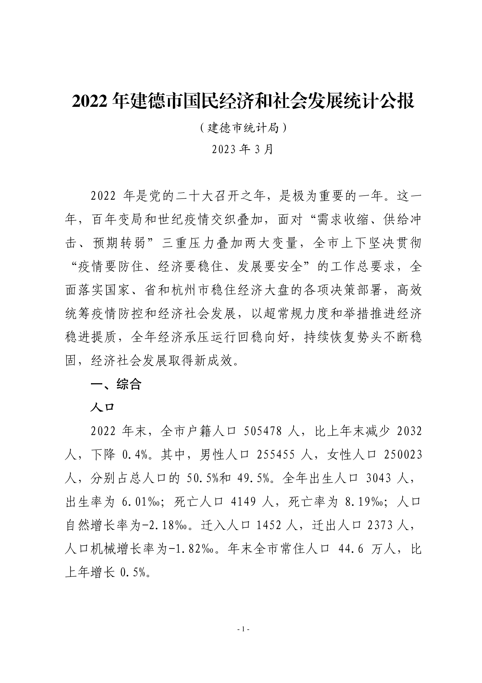 2022年杭州市建德市人民政府國(guó)民經(jīng)濟(jì)和社會(huì)發(fā)展統(tǒng)計(jì)公報(bào)(2023年更新)
