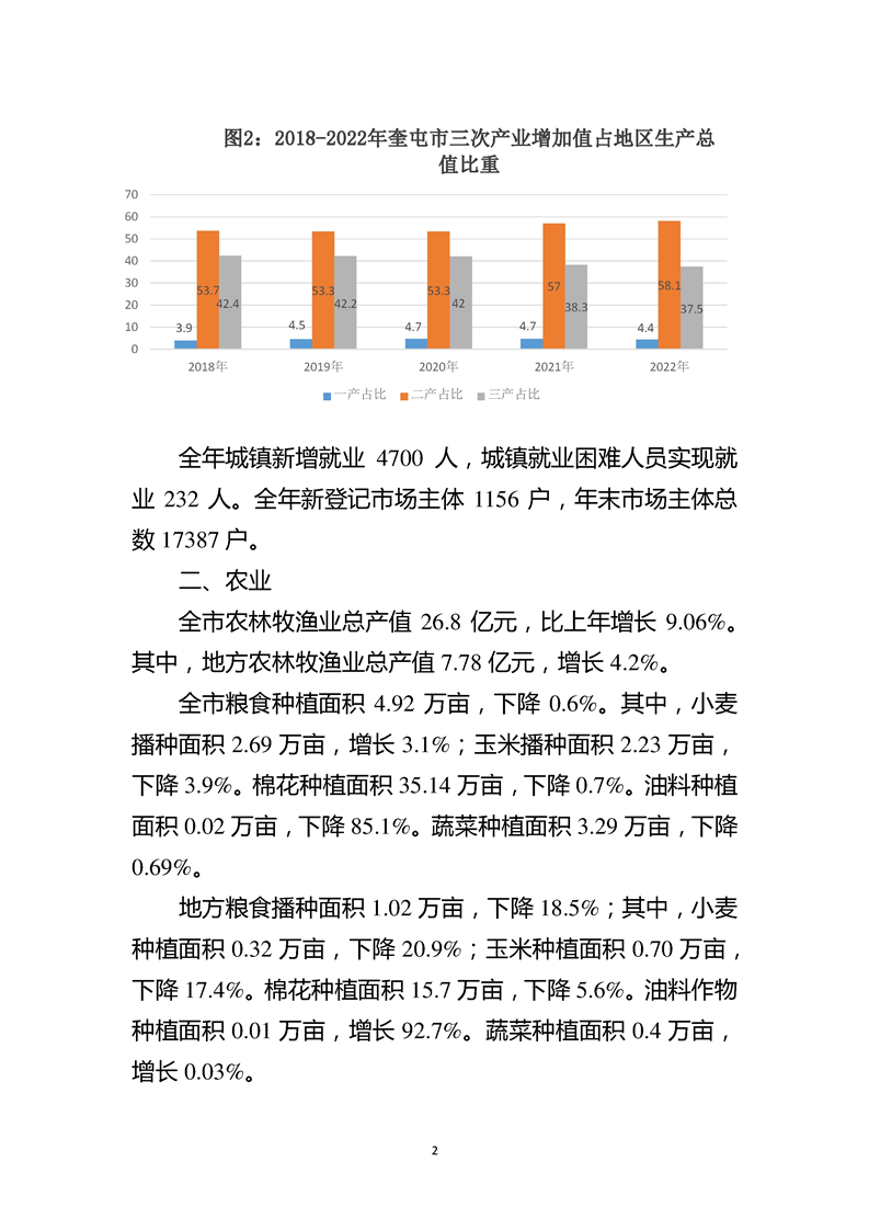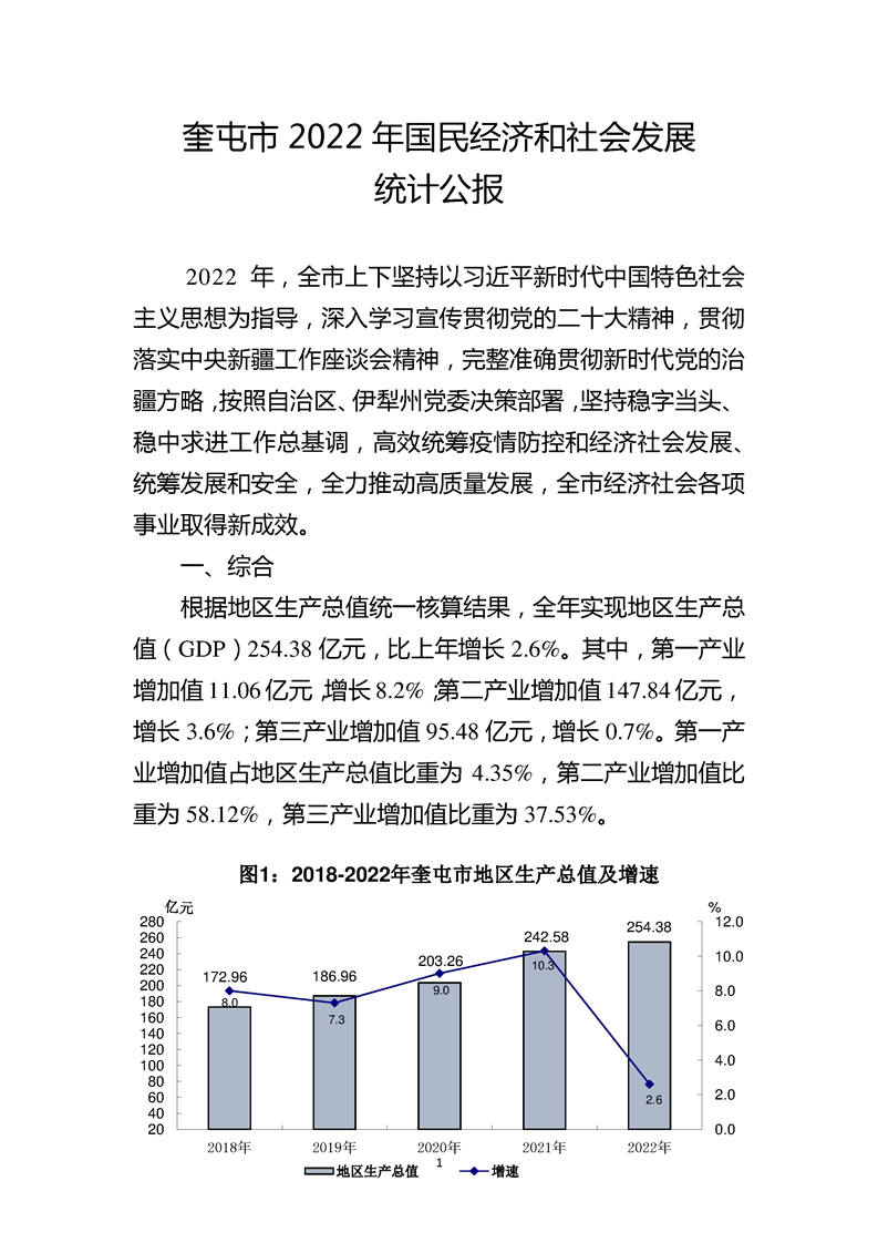 2022年伊犁哈薩克自治州奎屯市人民政府國民經(jīng)濟和社會發(fā)展統(tǒng)計公報(2023年更新)