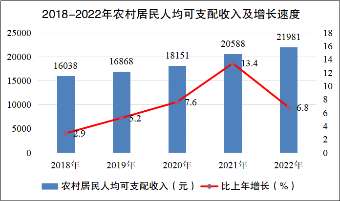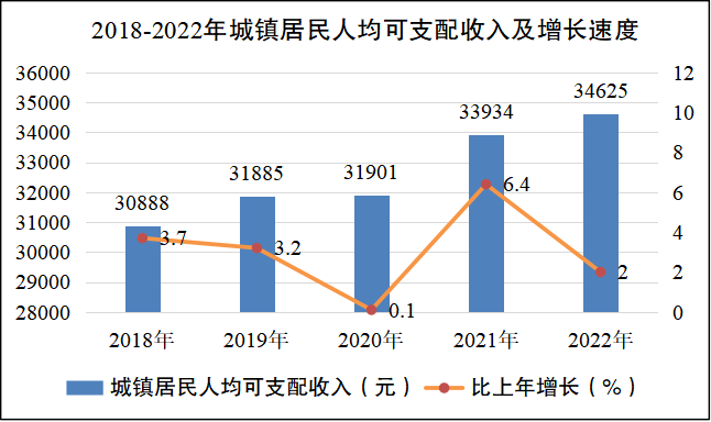 2022年全縣城鎮(zhèn)居民人均可支配收入34625元,比上年增長2%;農(nóng)村居民人均可支配收入21981元,比上年增長6.8%。