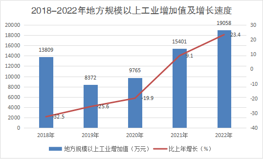 實現(xiàn)規(guī)模以上工業(yè)增加值19058萬元,同比增長23.4%。分門類看,規(guī)模以上采礦業(yè)增加值增長78.6%,制造業(yè)增加值增長8.9%,電力、熱力、燃氣及水生產(chǎn)和供應(yīng)業(yè)增加值下降2.6%。