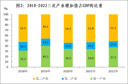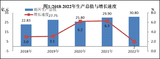 初步核算,2022年,全縣實現(xiàn)地區(qū)生產(chǎn)總值30.8億元,按可比價計算,比上年增長2%。其中,第一產(chǎn)業(yè)增加值11.4億元,增長4.7%;第二產(chǎn)業(yè)增加值3.6億元,增長0.7%;第三產(chǎn)業(yè)增加值15.8億元,增長0.6%。三次產(chǎn)業(yè)比重為37.2:11.6:51.2。