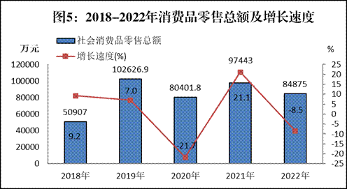 全年實現(xiàn)社會消費品零售總額84875萬元,比上年下降8.5%。按經(jīng)營地統(tǒng)計:城鎮(zhèn)消費品零售額63611.9萬元,下降6.1%;鄉(xiāng)村消費品零售額21263.1萬元,下降15.16%。