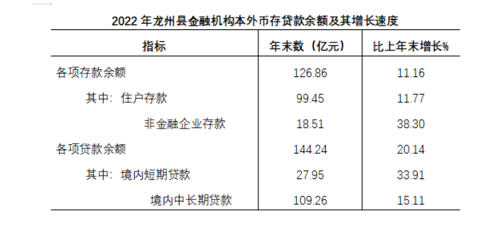 年末金融機(jī)構(gòu)本外幣各項(xiàng)存款余額126.86億元,比年初增加12.75億元,其中住戶存款99.45億元,比年初增加10.49億元。年末金融機(jī)構(gòu)本外幣各項(xiàng)貸款余額144.24億元,比年初增加24.19億元。