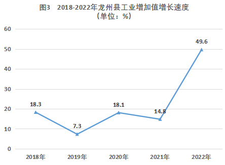 2022年全縣全部工業(yè)增加值21.89億元,比上年增長(zhǎng)41.6%。規(guī)模以上工業(yè)增加值同比增長(zhǎng)49.6%。在規(guī)模以上工業(yè)中,分門類看,采礦業(yè)增長(zhǎng)433.4%,制造業(yè)增長(zhǎng)41.2%,電力、熱力、燃?xì)夂退纳a(chǎn)和供應(yīng)業(yè)下降0.7%。分經(jīng)濟(jì)類型看,股份制企業(yè)增長(zhǎng)49.6%,國(guó)有控股企業(yè)增長(zhǎng)107.7%,非公有制企業(yè)增長(zhǎng)30.9%。輕工業(yè)增長(zhǎng)7.7%,重工業(yè)增長(zhǎng)83.2%。