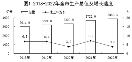 初步核算,全市生產(chǎn)總值實(shí)現(xiàn)3880.3億元,比上年增長3.8%。其中,第一產(chǎn)業(yè)增加值464.8億元,增長4.9%;第二產(chǎn)業(yè)增加值1391.5億元,增長5.7%;第三產(chǎn)業(yè)增加值2024.0億元,增長2.3%。三次產(chǎn)業(yè)結(jié)構(gòu)為12.0∶35.9∶52.1。全市人均生產(chǎn)總值為42317元,比上年增長4.4%。