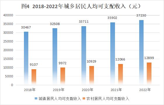 全年全縣城鎮(zhèn)居民人均可支配收入37230元,同比名義增長3.7%。從收入構(gòu)成上看,居民人均工資性收入23392元,增長2.7%;人均經(jīng)營凈收入5804元,增長1.4%;人均財產(chǎn)凈收入2865元,增長0.9%;人均轉(zhuǎn)移凈收入5169元,增長13.3%。2022年全縣城鎮(zhèn)居民人均生活消費支出17970元,同比下降1.9%。從分項支出情況看,城鎮(zhèn)居民人均食品煙酒支出6097元,下降2.9%;人均衣著支出1091元,下降8.9%;人均居住支出3304元,增長0.5%;人均生活用品及服務(wù)支出1173元,增下降4.7%;人均交通和通信支出2972元,增長3.3%;人均教育文化娛樂支出2017元,下降1.8%;人均醫(yī)療保健支出1085元,下降4.4%;人均其它商品和服務(wù)支出231元,下降9.1%。