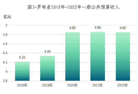 2022年,全縣一般公共預(yù)算收入4.85億元,比上年下降0.2%。一般公共預(yù)算支出31.40億元,比上年增長(zhǎng)1.1%。一般公共預(yù)算支出中,教育支出、文化體育與傳媒支出、社會(huì)保障和就業(yè)支出、節(jié)能環(huán)保支出、衛(wèi)生健康支出分別增長(zhǎng)0.2%、12.0%、4.3%、0.9%、5.2%。