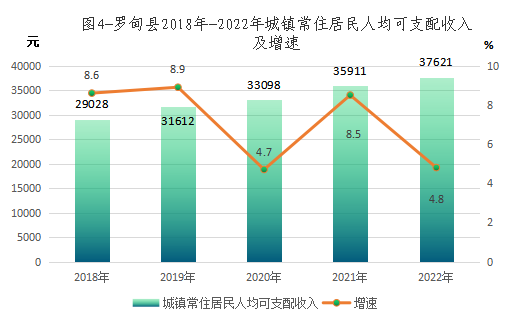 2022年,全縣城鎮(zhèn)常住居民人均可支配收入37621元,比上年增長(zhǎng)4.8%。城鎮(zhèn)居民人均生活消費(fèi)支出24117元,比上年增長(zhǎng)4.8%。每百戶城鎮(zhèn)居民家庭擁有家用汽車37.7輛,比上年下降0.2%;擁有電冰箱131.5臺(tái),增長(zhǎng)0.7%;擁有洗衣機(jī)113.9臺(tái),增長(zhǎng)6.3%。