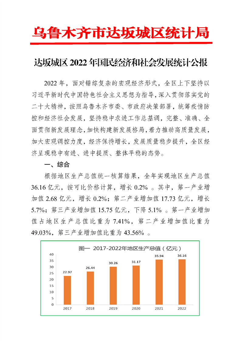 2022年烏魯木齊市達(dá)坂城區(qū)人民政府國(guó)民經(jīng)濟(jì)和社會(huì)發(fā)展統(tǒng)計(jì)公報(bào)(2023年更新)