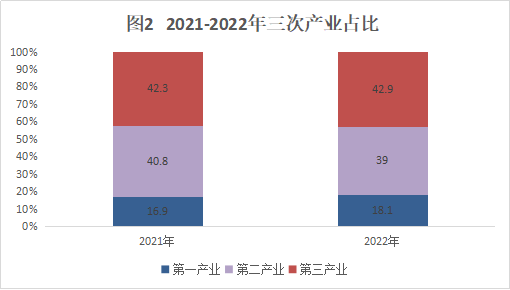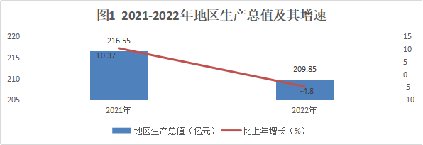 根據(jù)縣(市)生產(chǎn)總值統(tǒng)一核算結(jié)果,2022年全市生產(chǎn)總值209.85億元,按不變價計算,比上年同期下降4.8%。其中,第一產(chǎn)業(yè)增加值37.90億元,增長3.5%;第二產(chǎn)業(yè)增加值81.89億元,下降9.7%;第三產(chǎn)業(yè)增加值90.06億元,下降3.5%。