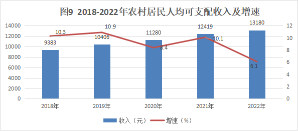 表16 2018-2022年農(nóng)村居民人均可支配收入及增速