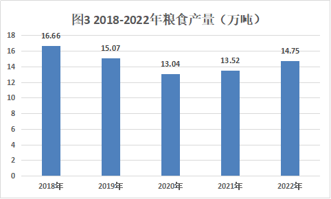 表4 2018-2022糧食產(chǎn)量(萬噸)