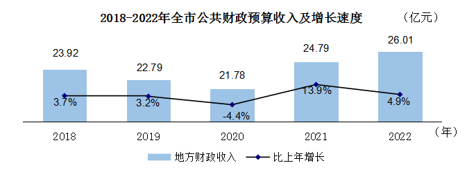 全年全市地方一般公共預算收入26.01億元[9],比上年增長4.9%(同口徑增長15.8%),其中稅收收入16.82億元,下降7.1%,占地方一般公共預算收入的64.7%。全年一般公共預算支出121.84億元,比上年增長31.7%。