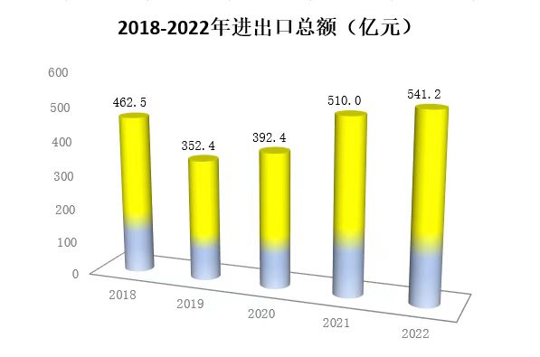 外貿(mào)進(jìn)出口總值541.2億元,同比增長(zhǎng)6.0%,其中,出口212.2億元,同比下降10.8%;進(jìn)口328.9億元,同比增長(zhǎng)20.7%。