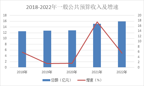 圖5、2018-2022年一般公共預(yù)算收入及增速
