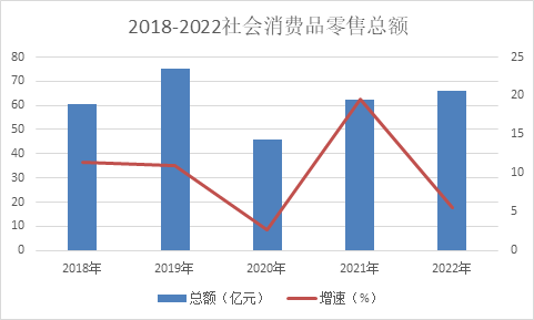 圖4、2018-2022年社會消費(fèi)品零售總額