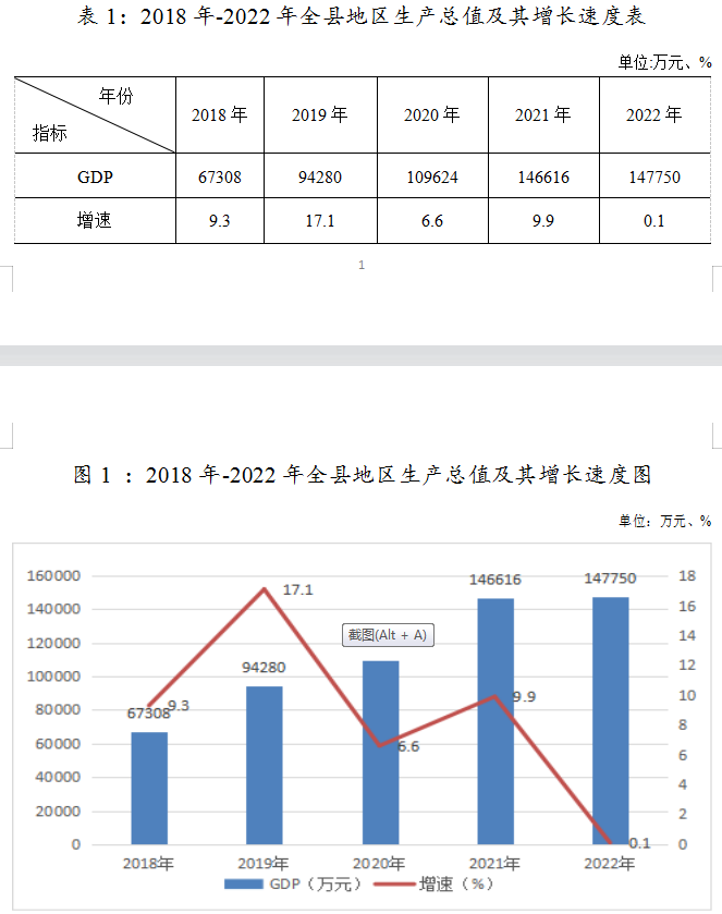 初步核算,2022年全縣生產(chǎn)總值147750萬元,按不變價格計算,比上年增長0.1%。其中,第一產(chǎn)業(yè)增加值26175萬元,增長8.4%,占生產(chǎn)總值的比重為17.7%;第二產(chǎn)業(yè)增加值58768萬元,下降15.7%,占生產(chǎn)總值的比重為39.8%,其中,工業(yè)增加值53091萬元,下降12.0%,建筑業(yè)增加值5677萬元,下降31.2%;第三產(chǎn)業(yè)增加值62807萬元,增長6.6%,占生產(chǎn)總值的比重為42.5%。人均地區(qū)生產(chǎn)總值28922元。