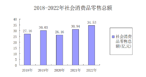 全年社會(huì)消費(fèi)品零售總額34.53億元,比上年增長11.6%。按經(jīng)營地統(tǒng)計(jì):城鎮(zhèn)消費(fèi)品零售額31.83億元,增長9.6%;農(nóng)村消費(fèi)品零售額2.70億元,增長43.3%。按行業(yè)分:批零貿(mào)易業(yè)零售額30.03億元,增長10.8%;住宿餐飲業(yè)零售額4.50億元,增長17.6%。