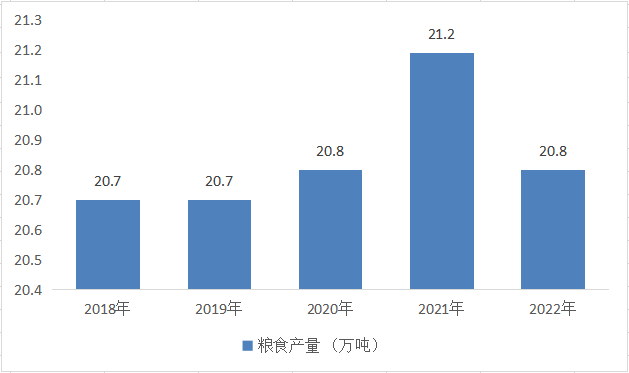 全年糧食總產(chǎn)量20.81萬噸,比上年下降1.8%。其中,夏糧產(chǎn)量3.57萬噸,增長0.4%;秋糧產(chǎn)量17.24萬噸,下降2.2%。經(jīng)濟(jì)作物中,油料作物產(chǎn)量3.03萬噸,增長?1.0?%;蔬菜及食用菌產(chǎn)量?52.7萬噸,增長2.2?%;園林水果產(chǎn)量?16.2萬噸,增長3.7?%。