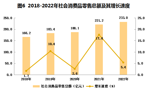 ? ?2022年,全區(qū)居民消費(fèi)價格總指數(shù)102.4%,其中消費(fèi)品價格指數(shù)103.3%,商品零售價格總指數(shù)105.2%。