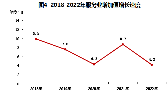 ? ?全年全區(qū)服務(wù)業(yè)實(shí)現(xiàn)增加值305.6億元,比上年增長4.2%。其中,批發(fā)和零售業(yè)實(shí)現(xiàn)增加值70.4億元,增長5.9%;交通運(yùn)輸、倉儲和郵政業(yè)增加值47.7億元,增長2.9%;住宿和餐飲業(yè)實(shí)現(xiàn)增加值11.3億元,增長2.0%;金融業(yè)實(shí)現(xiàn)增加值29.8億元,增長2.5%;房地產(chǎn)業(yè)實(shí)現(xiàn)增加值34.6億元,增長2.2%;其他服務(wù)業(yè)實(shí)現(xiàn)增加值109.8億元,增長4.9%。