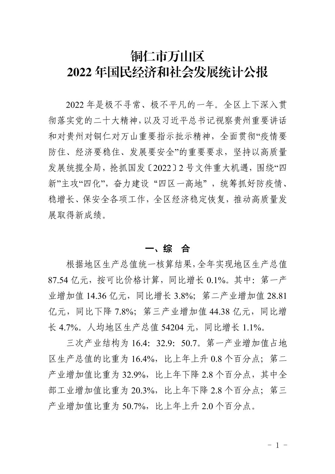 2022年銅仁市萬山區(qū)人民政府國民經(jīng)濟(jì)和社會發(fā)展統(tǒng)計公報(2023年更新)
