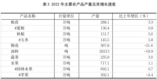 全年全市糧食總產(chǎn)量28.8億公斤,比上年增加0.9億公斤,增長(zhǎng)3.3%。其中,夏糧13.6億公斤,增加0.1億公斤,增長(zhǎng)0.9%;秋糧15.2億公斤,增加0.8億公斤,增長(zhǎng)5.6%。水果717.1萬噸,增長(zhǎng)1.1%。