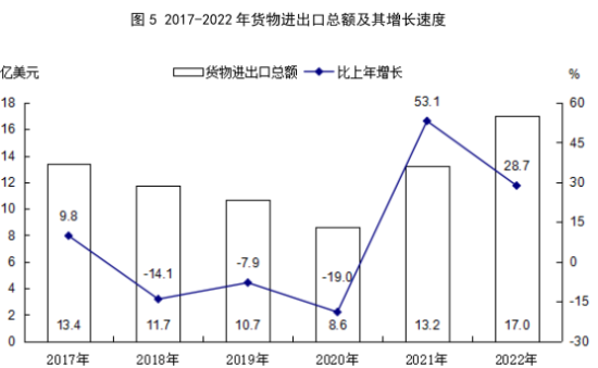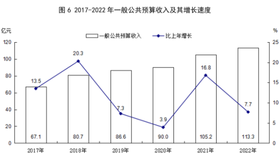 圖1?2017-2022年地區(qū)生產(chǎn)總值及其增長(zhǎng)速度