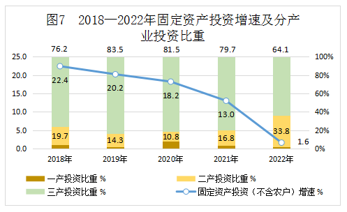 全年固定資產(chǎn)投資(不含農(nóng)戶)[4]比上年增長1.6%。分三次產(chǎn)業(yè)看,第一產(chǎn)業(yè)投資下降40.5%,第二產(chǎn)業(yè)投資增長104.1%,第三產(chǎn)業(yè)投資下降18.2%。