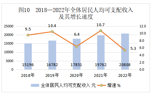 全年全縣居民人均可支配收入[8]20808元,比上年增長5.3%。按常住地分,城鎮(zhèn)常住居民人均可支配收入34922元,增長2.7%;農(nóng)村常住居民人均可支配收入14632元,增長6.8%。