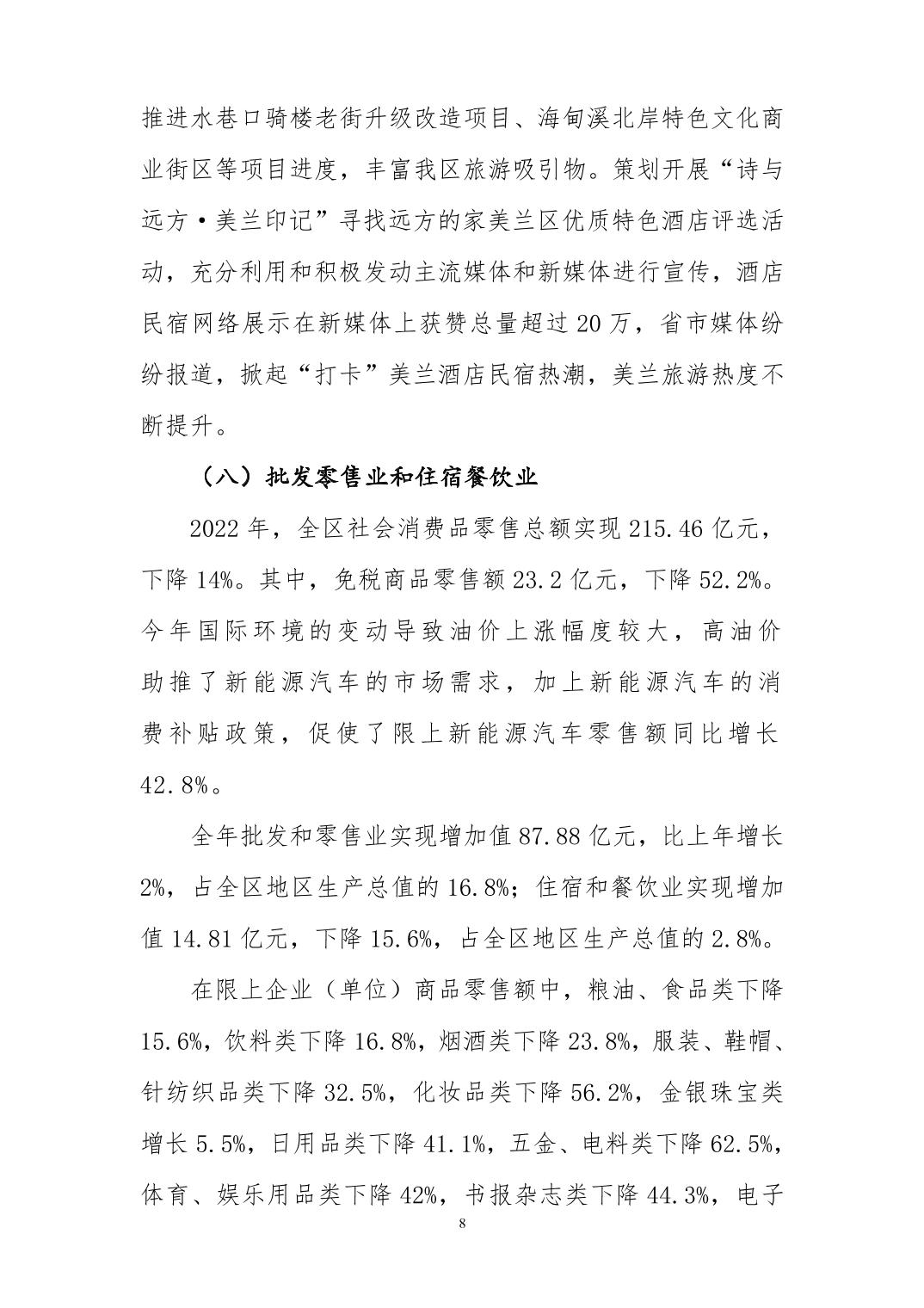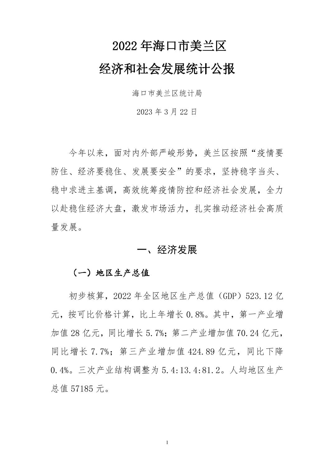 2022年海口市美蘭區(qū)人民政府國民經(jīng)濟(jì)和社會(huì)發(fā)展統(tǒng)計(jì)公報(bào)(2023年更新)