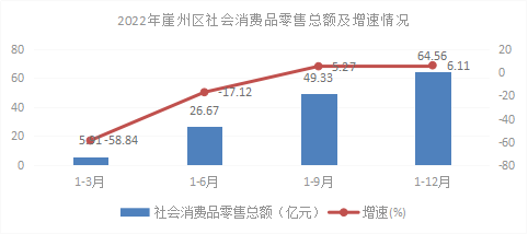 2022年全區(qū)限額以上單位消費(fèi)品零售總額64.56億元,同比增長(zhǎng)6.11%,其中網(wǎng)上零售額64.41億元,占比99.94%,同比增長(zhǎng)6.20%。