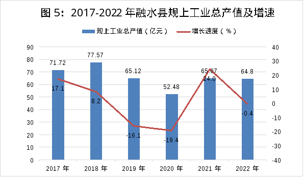 全部工業(yè)總產(chǎn)值71.0億元,比上年下降0.5%,其中,規(guī)模以上工業(yè)總產(chǎn)值64.8億元,下降0.4%;規(guī)模以上工業(yè)增加值下降2.3%。