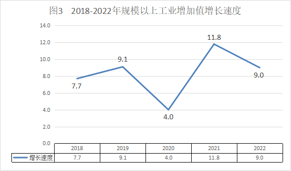 全年全部工業(yè)增加值149.68億元,其中規(guī)模以上工業(yè)增加值138.88億元,同比增長9%。分輕重工業(yè)看,輕工業(yè)下降14.2%,重工業(yè)增長39.4%;分經(jīng)濟類型看,國有企業(yè)增長0.8%,股份制企業(yè)增長10.6%,外商及港澳臺商投資企業(yè)下降48.5%,其他經(jīng)濟類型企業(yè)增長46.4%;分門類看,采礦業(yè)下降68.9%,制造業(yè)增長6.6%,電力、熱力、燃?xì)饧八a(chǎn)和供應(yīng)業(yè)增長39.9%。