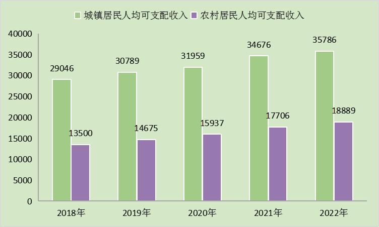 圖4? 2018-2022年興業(yè)縣城鄉(xiāng)居民收入(元)