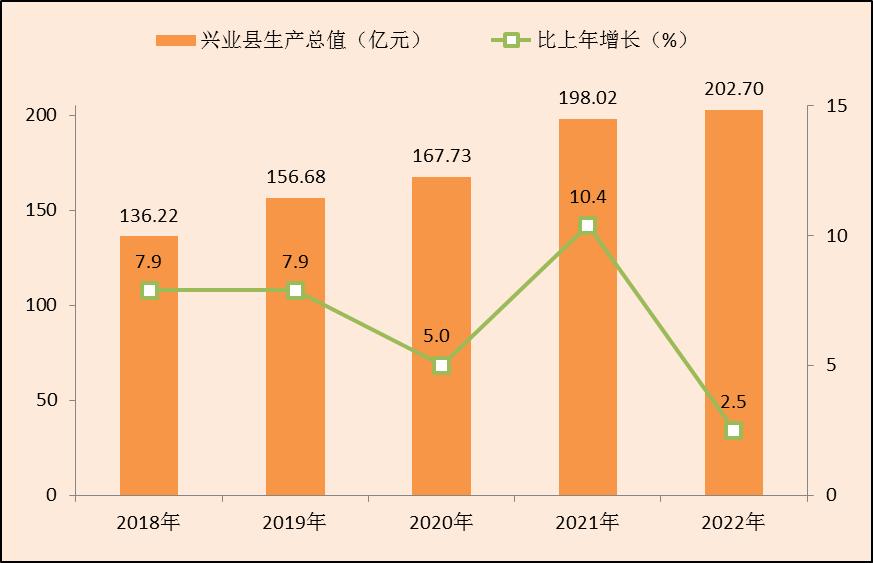 2022年,興業(yè)縣深入學(xué)習(xí)貫徹黨的二十大精神,堅(jiān)決貫徹落實(shí)黨中央“疫情要防住、經(jīng)濟(jì)要穩(wěn)住、發(fā)展要安全”重要要求,高效統(tǒng)籌疫情防控和經(jīng)濟(jì)社會(huì)發(fā)展,全縣經(jīng)濟(jì)克難前行,恢復(fù)態(tài)勢(shì)總體穩(wěn)定。