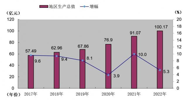 圖1:2017年—2022年生產(chǎn)總值和增速情況