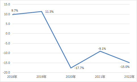 2022年,規(guī)模以上工業(yè)增加值比上年下降15.0%。