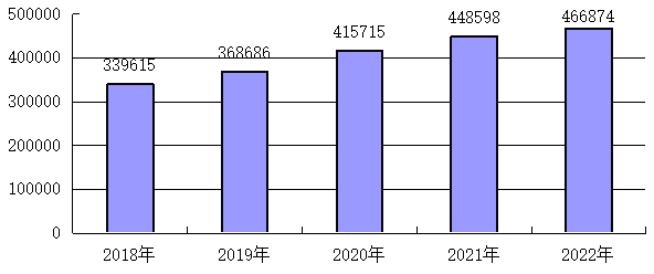 圖3平壩區(qū)2018年——2022年農(nóng)林牧漁業(yè)總產(chǎn)值(萬元)