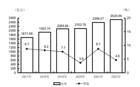 圖1:2017-2022年全市生產(chǎn)總值及增長(zhǎng)速度