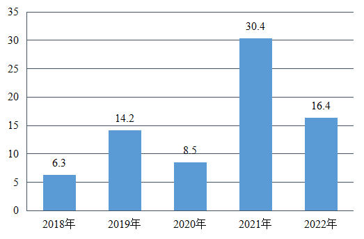 圖2? 2018-2022年固定資產(chǎn)投資總額增速(%)
