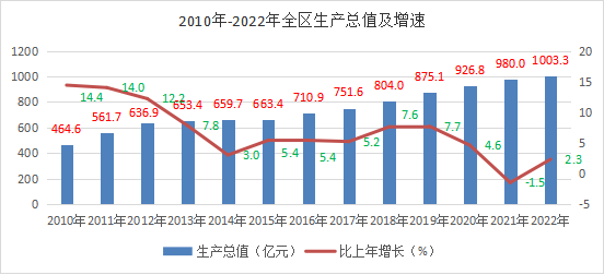2022年,面對錯綜復(fù)雜的形勢和艱巨繁重的任務(wù),全區(qū)上下堅決貫徹中央和省委、市委各項決策部署,完整準確全面貫徹新發(fā)展理念,負重前行,逆勢而上,加快唐山城市副中心建設(shè),經(jīng)濟社會呈現(xiàn)平穩(wěn)向好態(tài)勢。初步核算,全區(qū)地區(qū)生產(chǎn)總值完成1003.3億元,比上年增長2.3%,其中,第一產(chǎn)業(yè)增加值40.5億元,比上年增長3.4%;第二產(chǎn)業(yè)增加值652.1億元,比上年增長3.8%;第三產(chǎn)業(yè)增加值310.7億元,比上年下降0.5%。