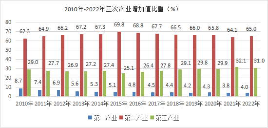 第一產(chǎn)業(yè)增加值占全區(qū)地區(qū)生產(chǎn)總值的比重為4.0%,第二產(chǎn)業(yè)增加值比重為65.0%,第三產(chǎn)業(yè)增加值比重為31.0%。全區(qū)人均地區(qū)生產(chǎn)總值為125883元,比上年增長2.6%。