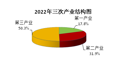三次產業(yè)結構為17.8:31.9:50.3,與上年相比,第一產業(yè)比重下降4.7個百分點,二、三產業(yè)比重分別提升2.0和2.7個百分點。