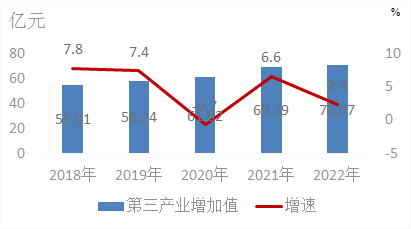 圖9 2018-2022年第三產(chǎn)業(yè)增加值及其增長(zhǎng)速度